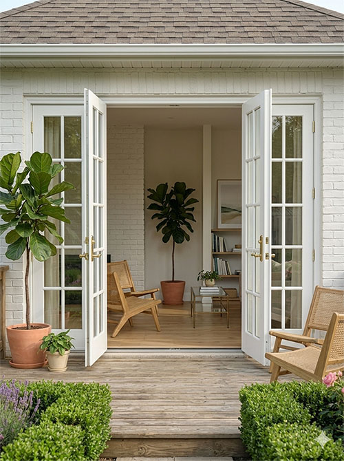 — classic hinged door pairs for patio and backyard access. The natural architectural choice for Malvern’s colonial and center-hall properties where the formality of a French door suits the home’s character.